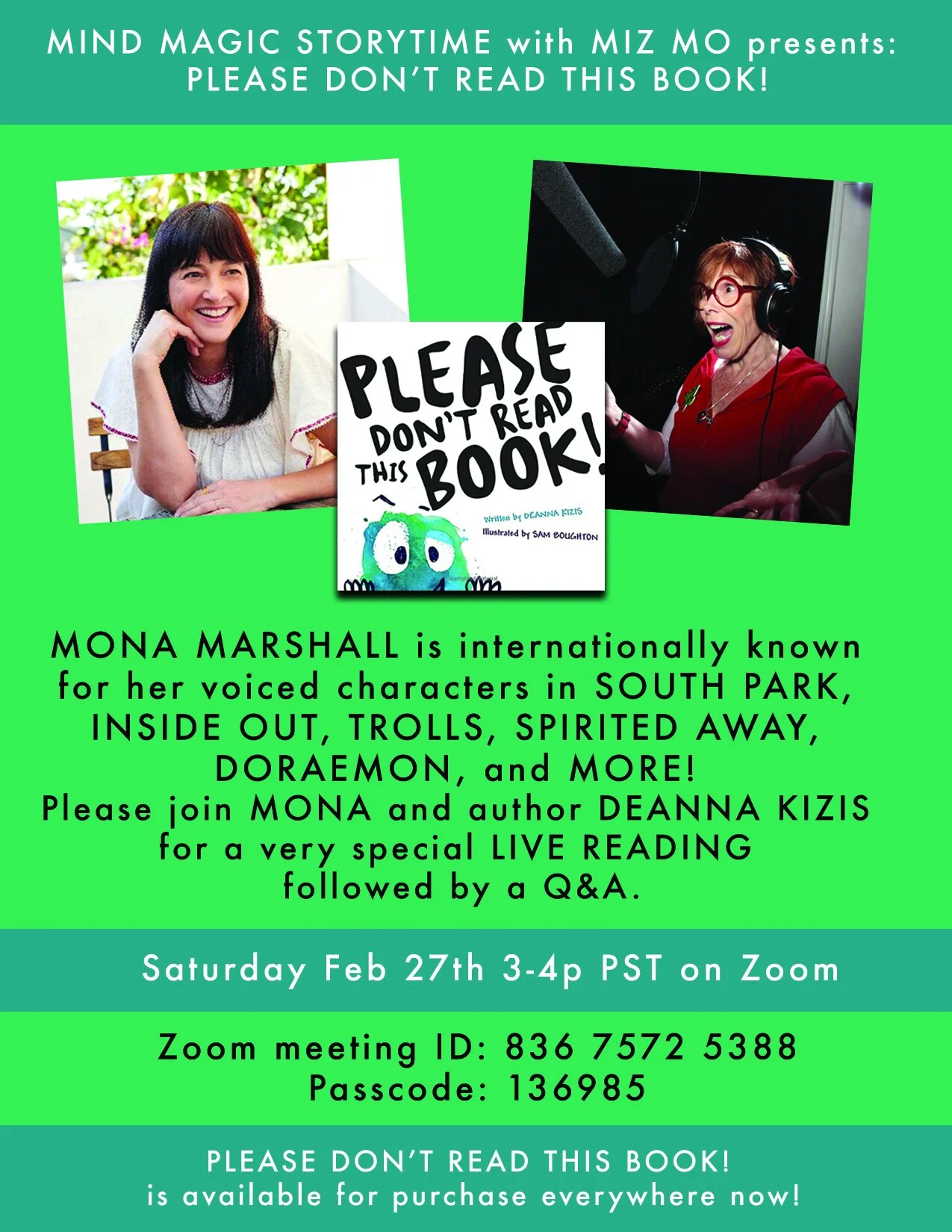 Hope you can join me and voice actor Mona Marshall for a very special live story time. This should be a good one!